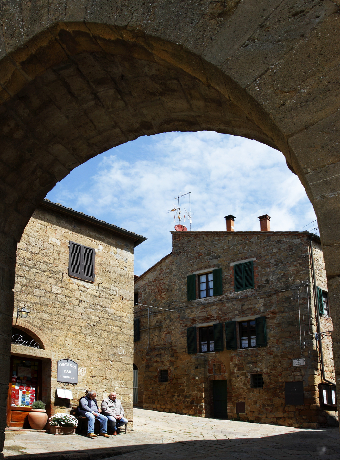 Elhagyva Chianti vidékét, déli irányban Siena fele tartva még rá lehet bukkanni hasonló gyöngyszemekre. A tipikus toszkánai településekkel ellentétben, ahol az újváros épületei között szoronganak a középkori utcák, Monteriggioni régi falai köré nem építkeztek – így a Dante által is megcsodált várfalak mögött egy apró falu rejtőzik. A néha zajos turistacsoportokat magából kiokádó autók és buszok parkolója is a domb aljában, a várfalaktól tisztes távolságban fekszik.