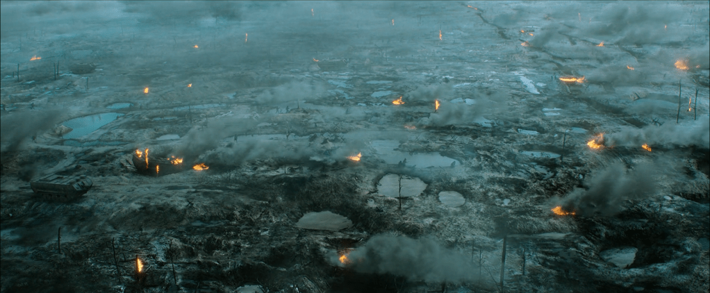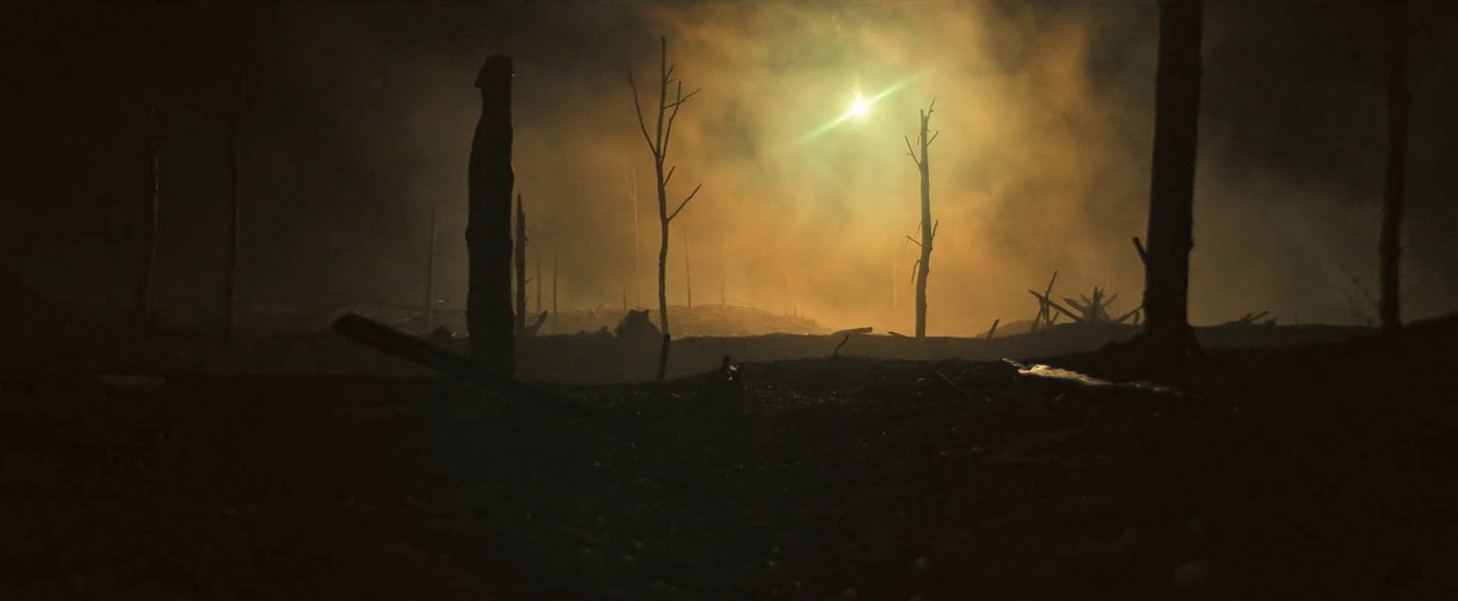 Így például James Friend operatőr egyes képsorainak láttán a néző bűntudattal arra ébredhet, hogy kimondhatatlanul szépnek talál valamit, ami tulajdonképpen nem más, mint az elképzelhetetlen borzalom ábrázolása. A csatatér felett lebegő pára és mustárgáz rétegeinek színátmenetei olyan látomásszerű absztrakt festményt alkotnak, amely egyszerre fájóan gyönyörű és szörnyűséges. A John Fordtól Tarkovszkijig vezető utat követi Berger azzal, hogy az ember által teremtett káoszt körülvevő időtlen, így szimbolikus erejű természetet is filmjének fontos szereplőjévé emeli. Nem véletlen, hogy a filmet mesés szépségű természeti kép nyitja és zárja, ezt teszi a már említett 1917 is.