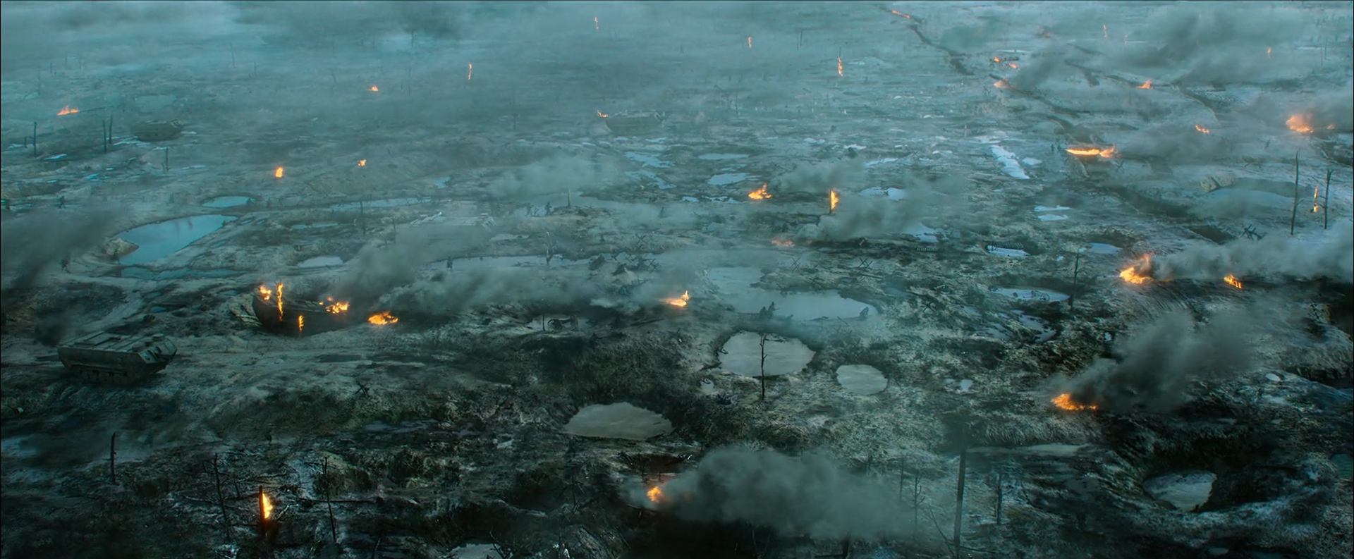 Ennek ellenére a német film készítői nem követik el azt a Terrence Malick-féle kapitális hibát, hogy hirtelen sebességváltások közben elgyönyörködnek saját vizuális megvalósításaikban. Mindenképpen leszögezném, hogy ez egyáltalán nem Az őrület határán (The Thin Red Line) típusú értékelhető, de zavaróan önimádó meditáció a háborúról, bár a hátborzongató szépség pillanatai fontos szerepet töltenek be a történet elmondásában. Ugyanakkor Friend kamerái és a művészi céllal bevetett digitális effektusok anatómiai részletek képeit is ránk szabadítják, de ezt sem azért teszik, hogy a közönséget egy túlméretezett esztétikai és érzelmi hullámvasútra lökjék fel. Ezt a ma már felfoghatatlanul barbár háborús gépezetet nem lehet és nem szabad csak nagy általánosságokkal és bravúros drónfelvételek magasságából lefesteni. A néhol felbukkanó naturalista részletek kapcsán az esetleg tiltakozó nézőnek bizony fel kell tennünk a szónoki kérdést: ha a testi sérülések realizmusát Berger elkerülte volna, akkor filmje vajon nem lenne-e csak olyan, mint egy jól sterilizált kis horzsolás, amelyről percek alatt megfeledkezhetünk?