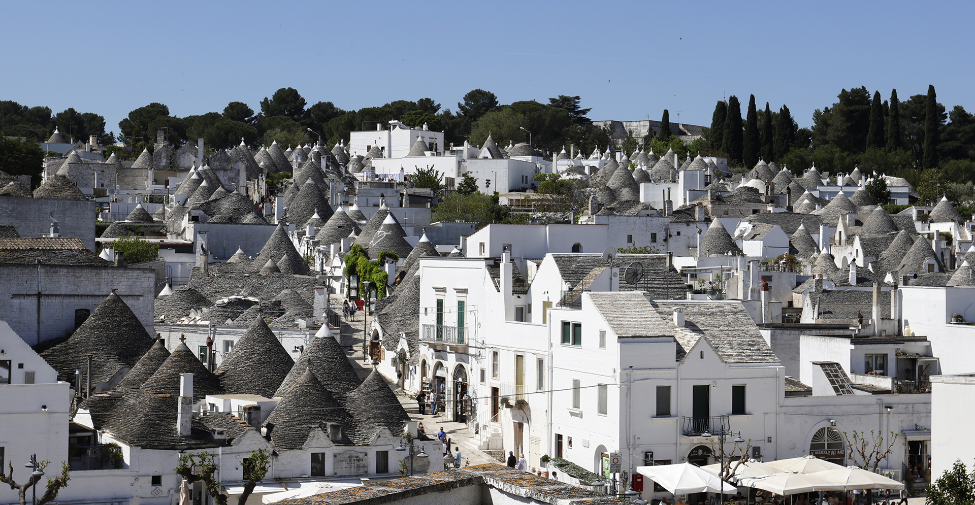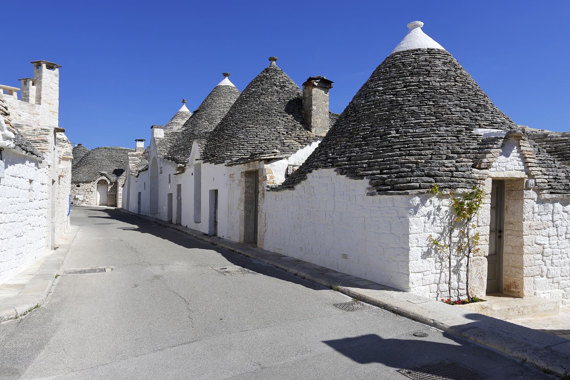 A ravasz gróf adócsalásának, pardon, kreatív adómentességének eredményeként a tízezer lakost számláló városka felkerült az UNESCO Világörökség listájára. A több mint 1600 trullo (többes számban trulli), azaz kör alakú, kúp alakú tetőzettel fedett, vakító fehérre festett kőház egyedi településsé varázsolta Alberobellót. Senki nem tudja, mikor épülhetett az első pugliai trullo, de a történészek egyetértenek abban, hogy e sajátos kunyhók eredete mindenképpen a vaskorban itt letelepedett törzsekhez vezethető vissza.